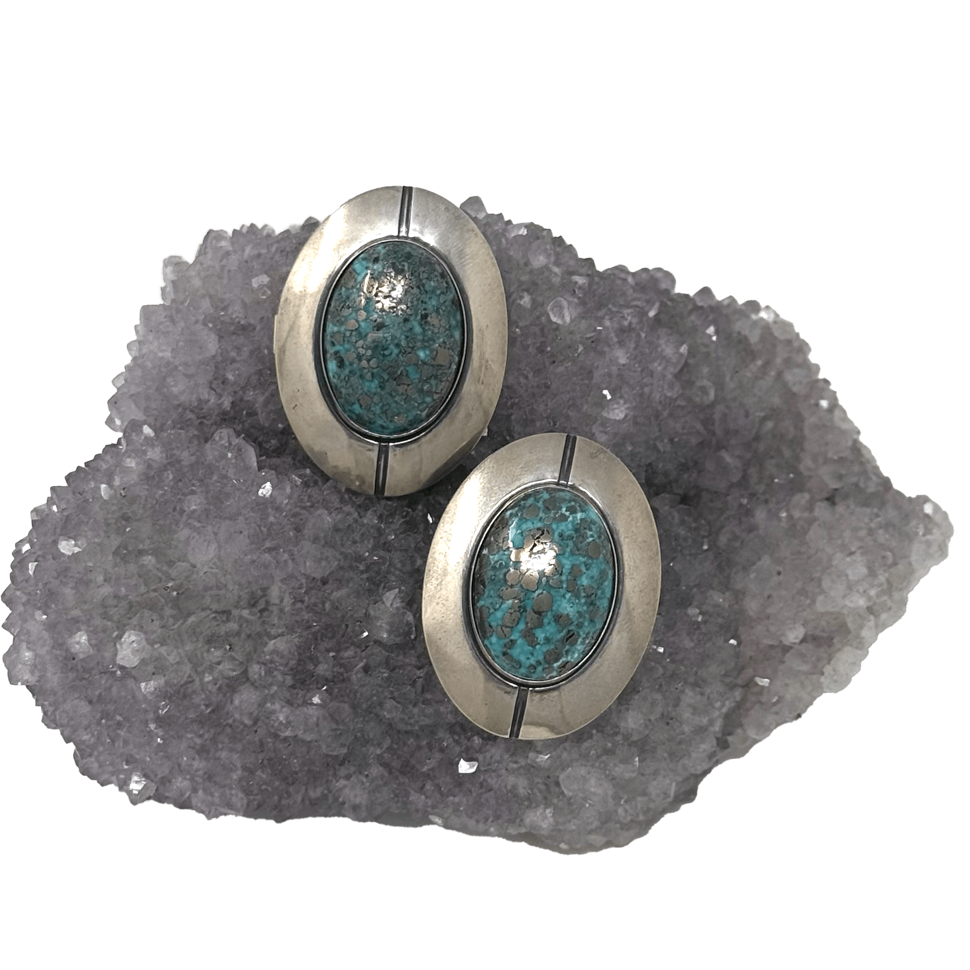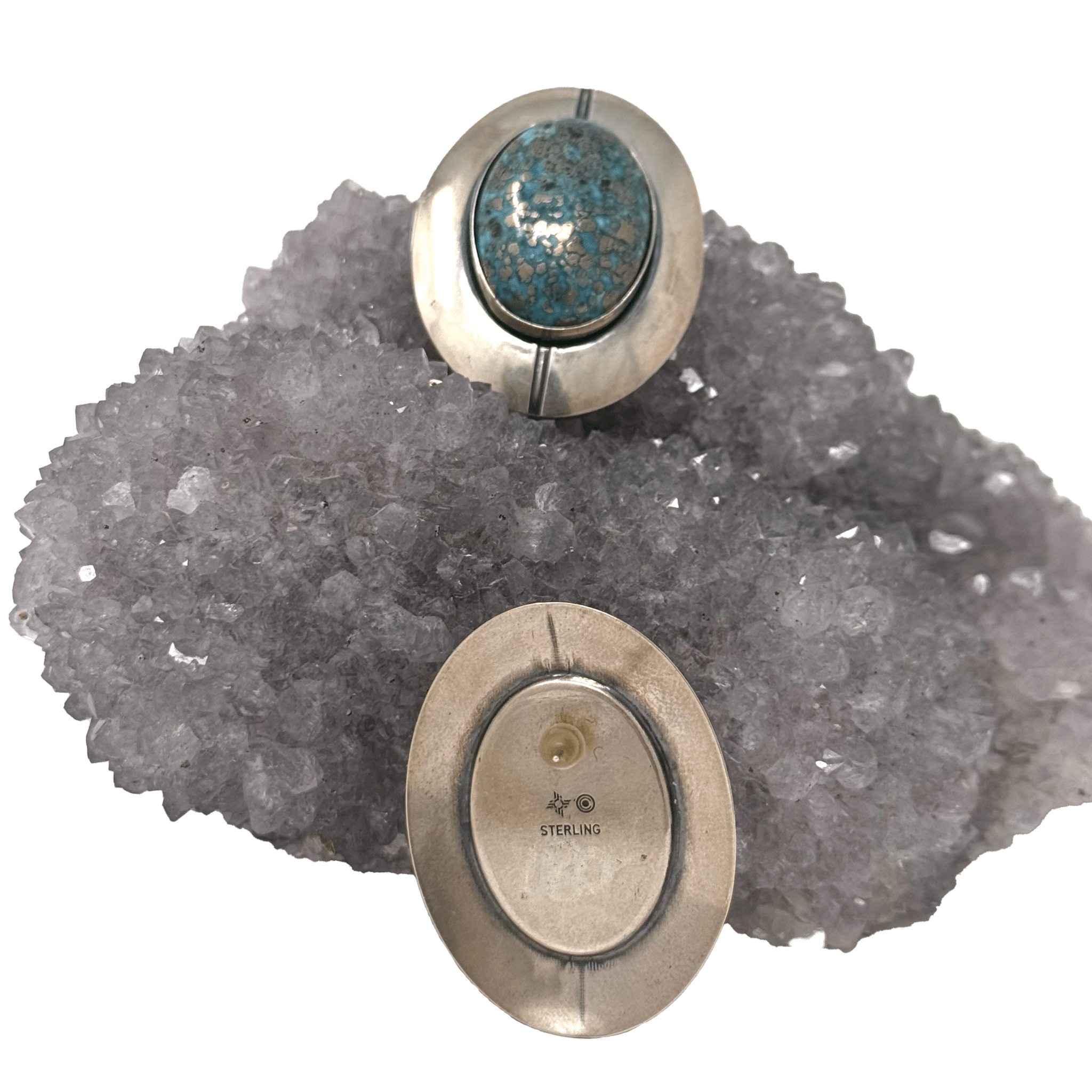 Turquoise stud with oversized sterling silver plate. Beautiful gem grade turquoise with a natural luster.