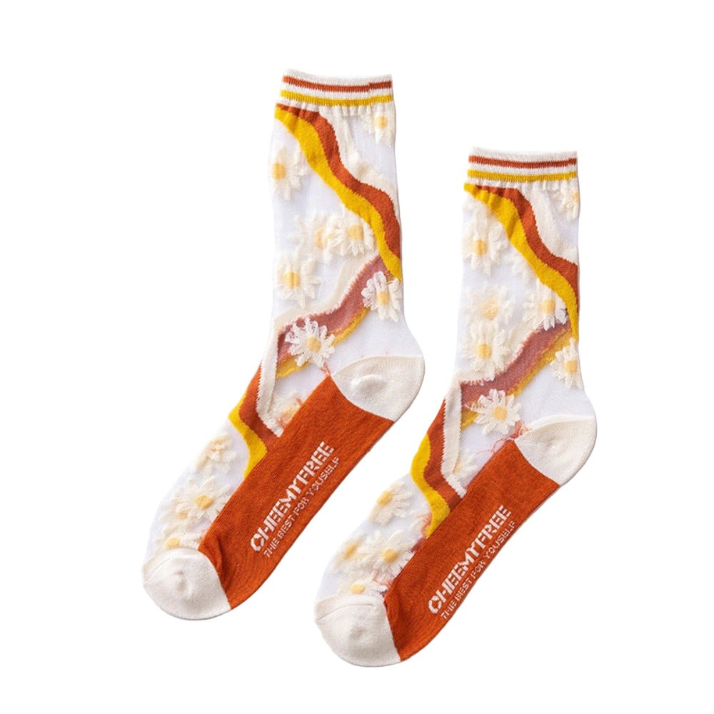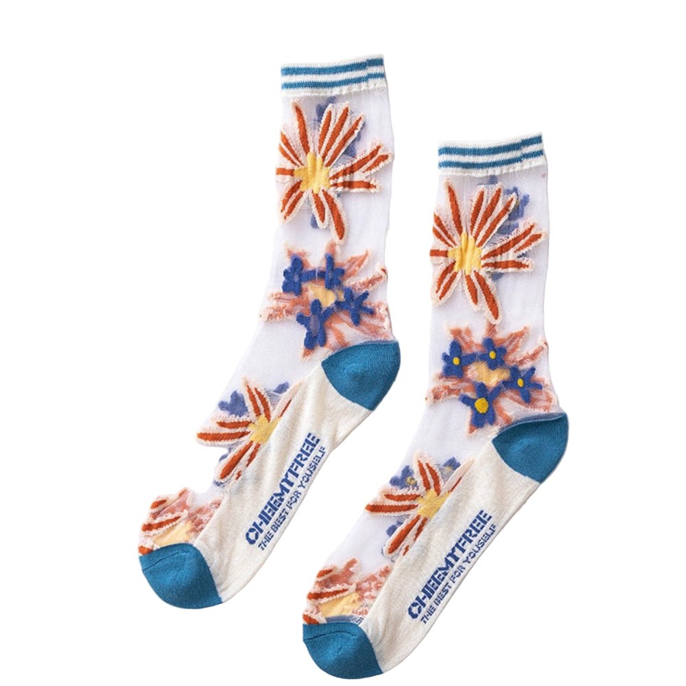 Elevate your style with these cool and fashionable socks featuring a trendy flower pattern and transparent mesh fabric.  Perfect for adding a touch of elegance and flair to your outfits. Experience comfort and breathability while staying on-trend.