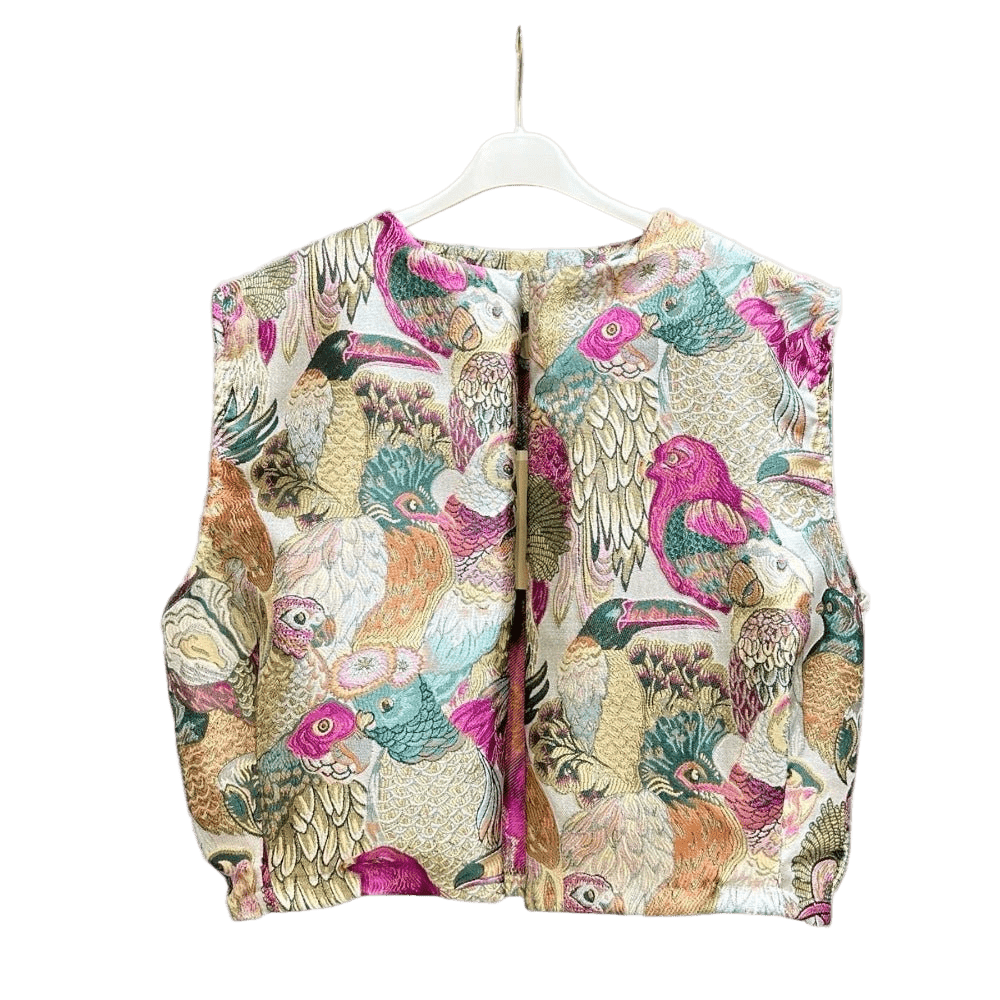 Oversized, loose fitting patterned vest in colorful designs, perfect for dressing up jeans or over an elegant outfit. One size fits most.