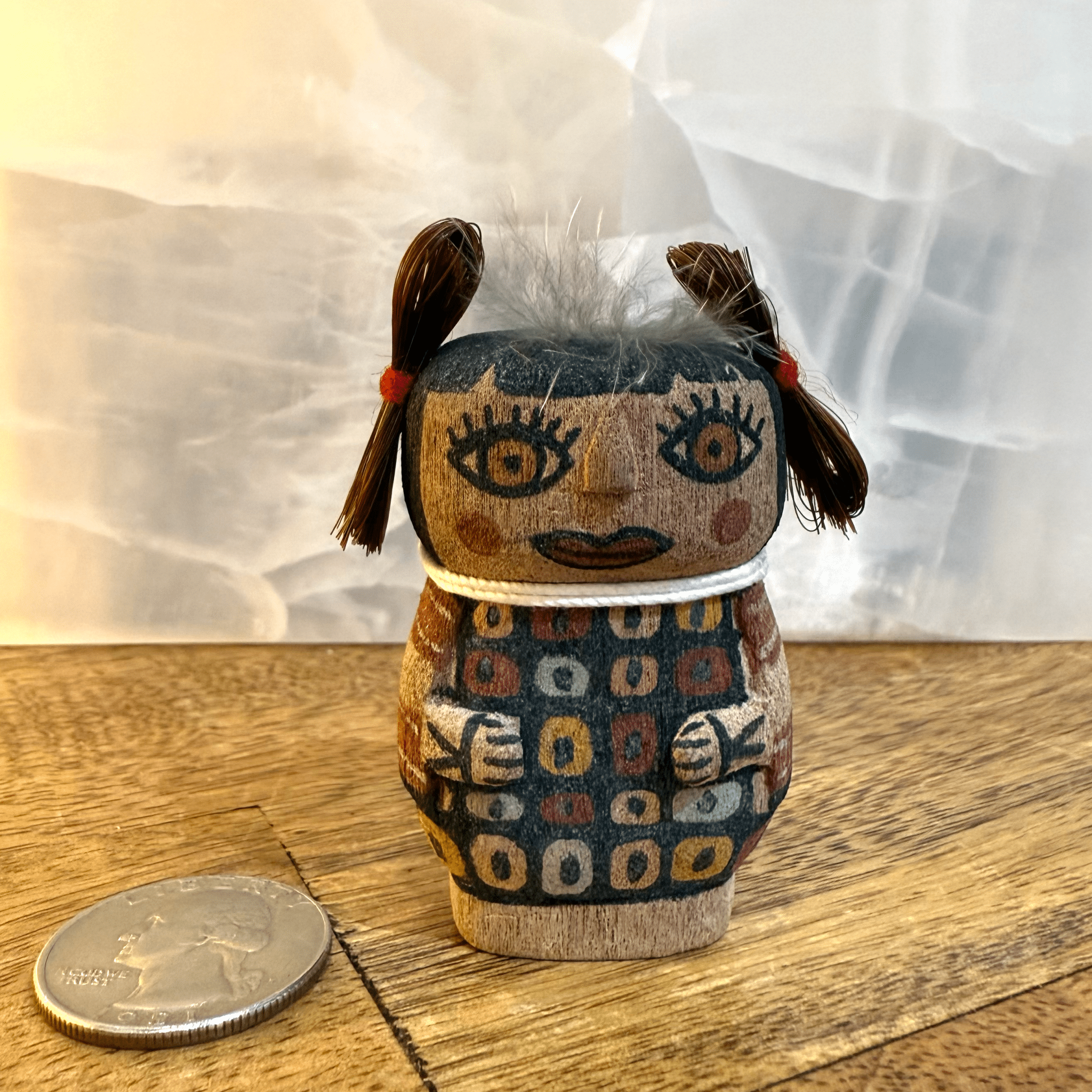Hand carved of the root of the cottonwood tree by Kevin Quanimptewa of the Tobacco clan from the village of Hotvela on Third Mesa.