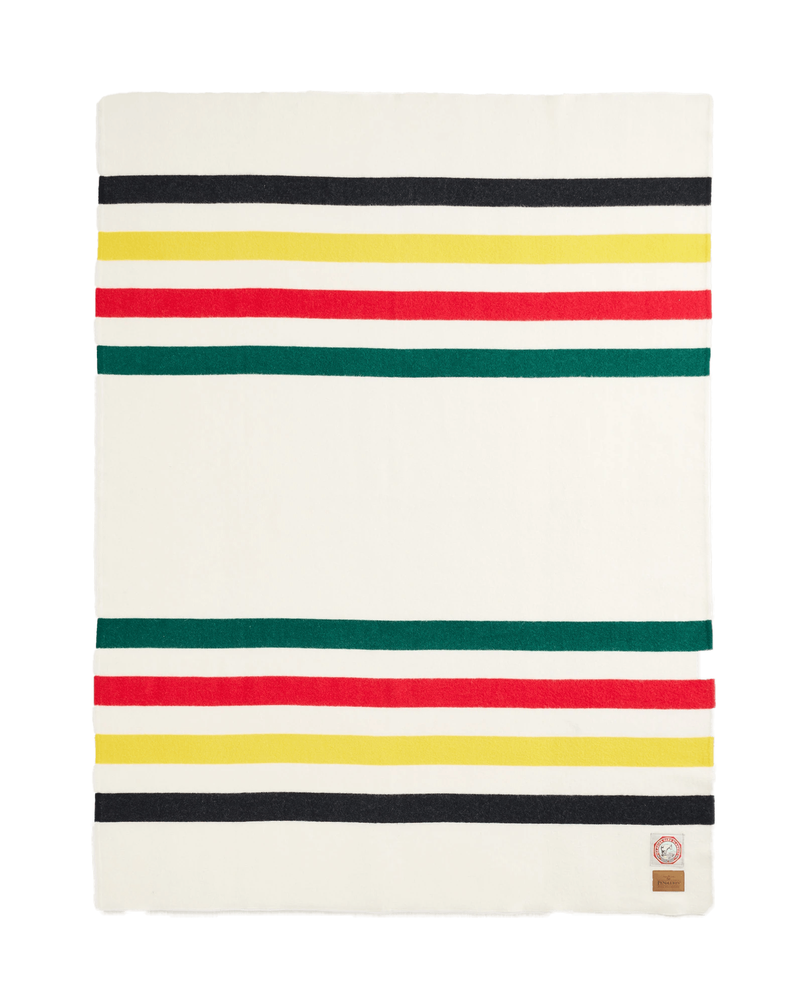 Its historic markings and colors date back to the frontier trading posts. Traders would indicate the weight of the blanket offered in exchange for furs by holding up one finger for each pound. The original blankets incorporated three, four or five black stripes in the design, which indicated the value of the blanket. Colors and variations of the original striped theme have been adapted to reflect distinguishing characteristics of each park and blanket in the collection. National Park Blankets are still woven right here in our Pacific Northwest mills, just as they were nearly 100 years ago.