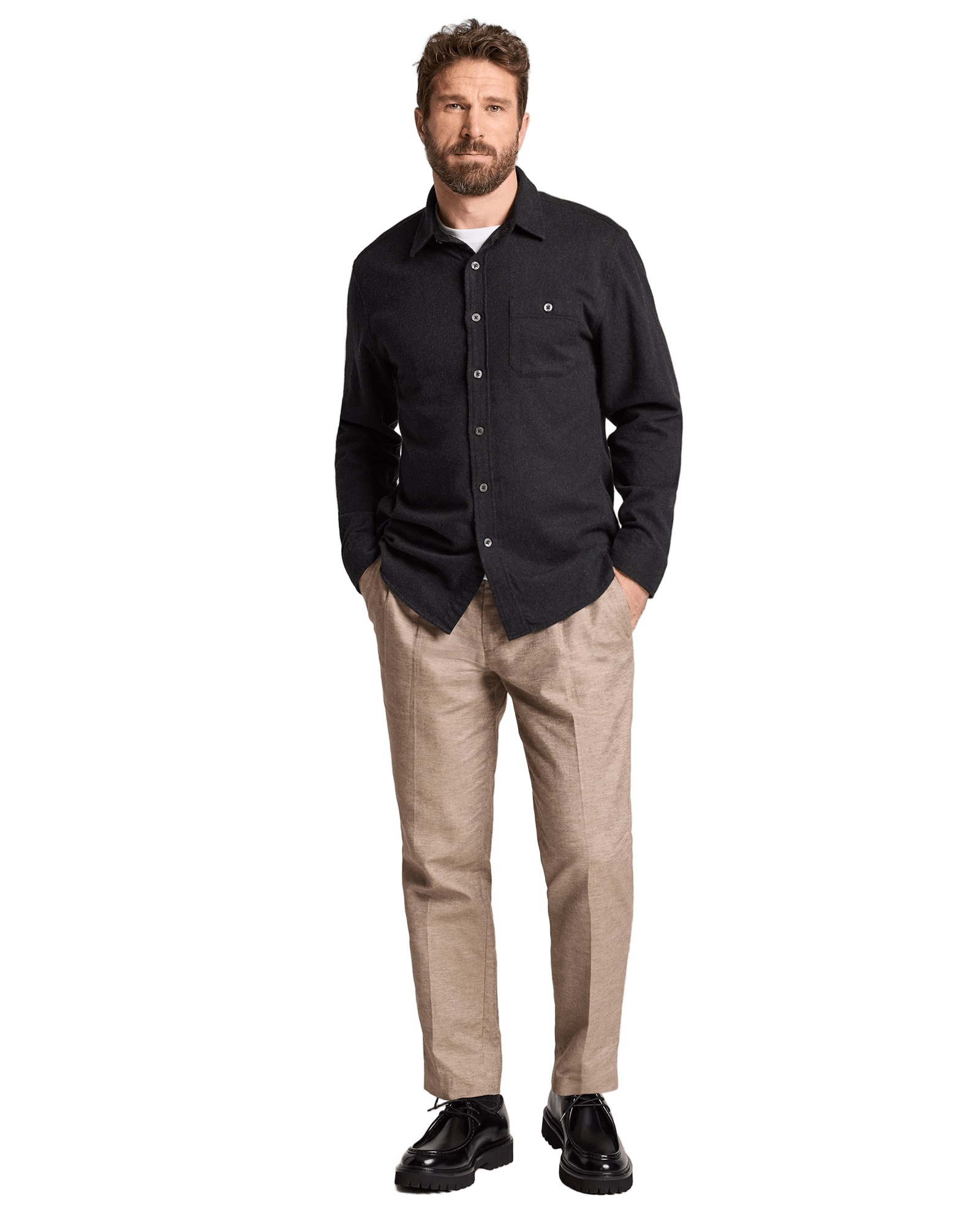 A dependable men's flannel shirt in a mid-weight cotton weave that's brushed on both sides for extra softness. One button-through chest pocket, fine-wale corduroy collar trim, side vents.