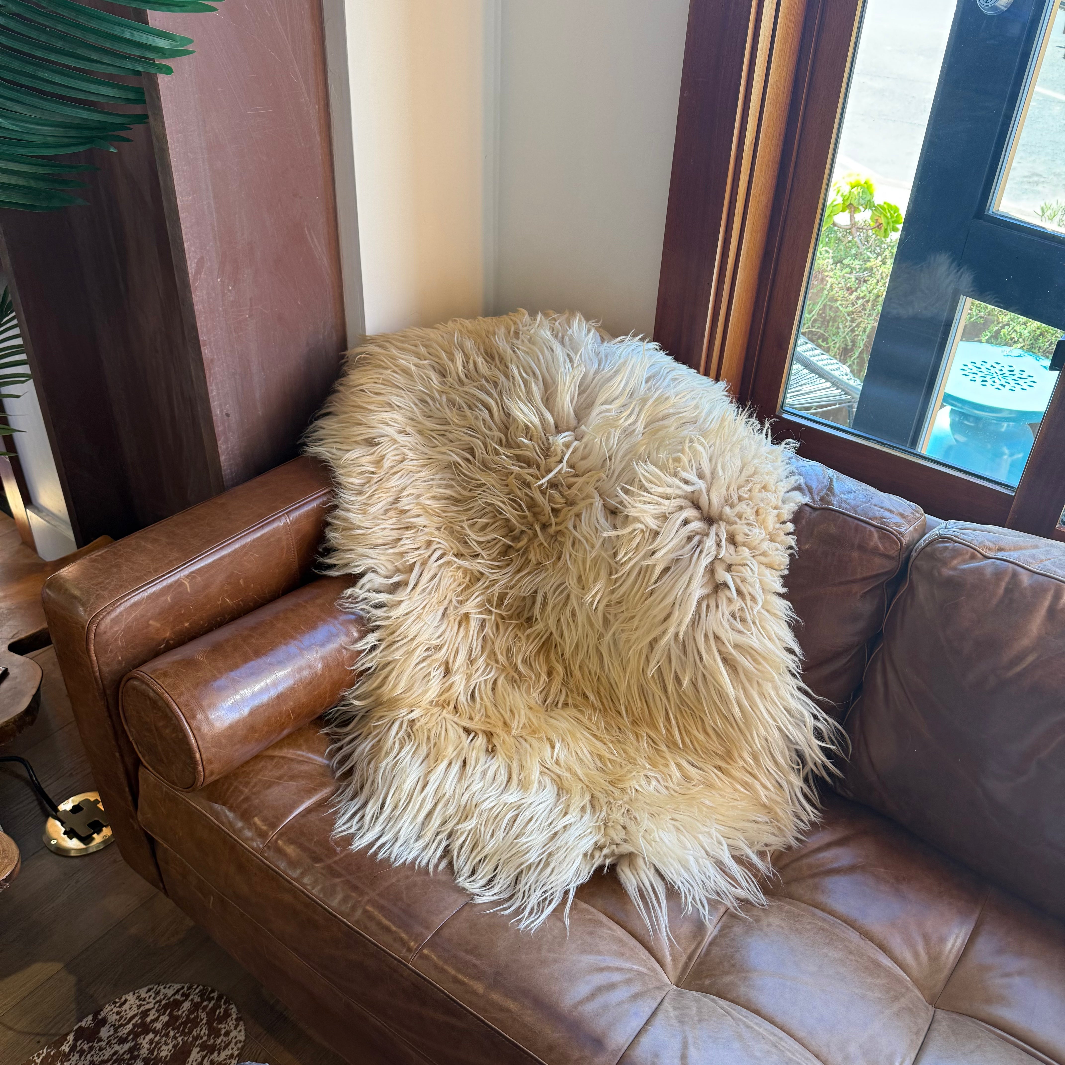 Sheep pelts are a beautiful and cozy addition to any home. We love to use them on the back of a chair or couch, on an ottoman, or on an office or dining room chair.